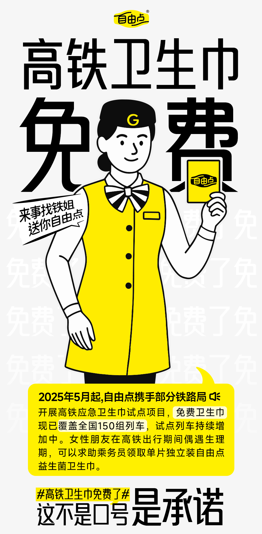 這一次,女性的“自由”不需要付費——高鐵終于實現衛生巾自由
